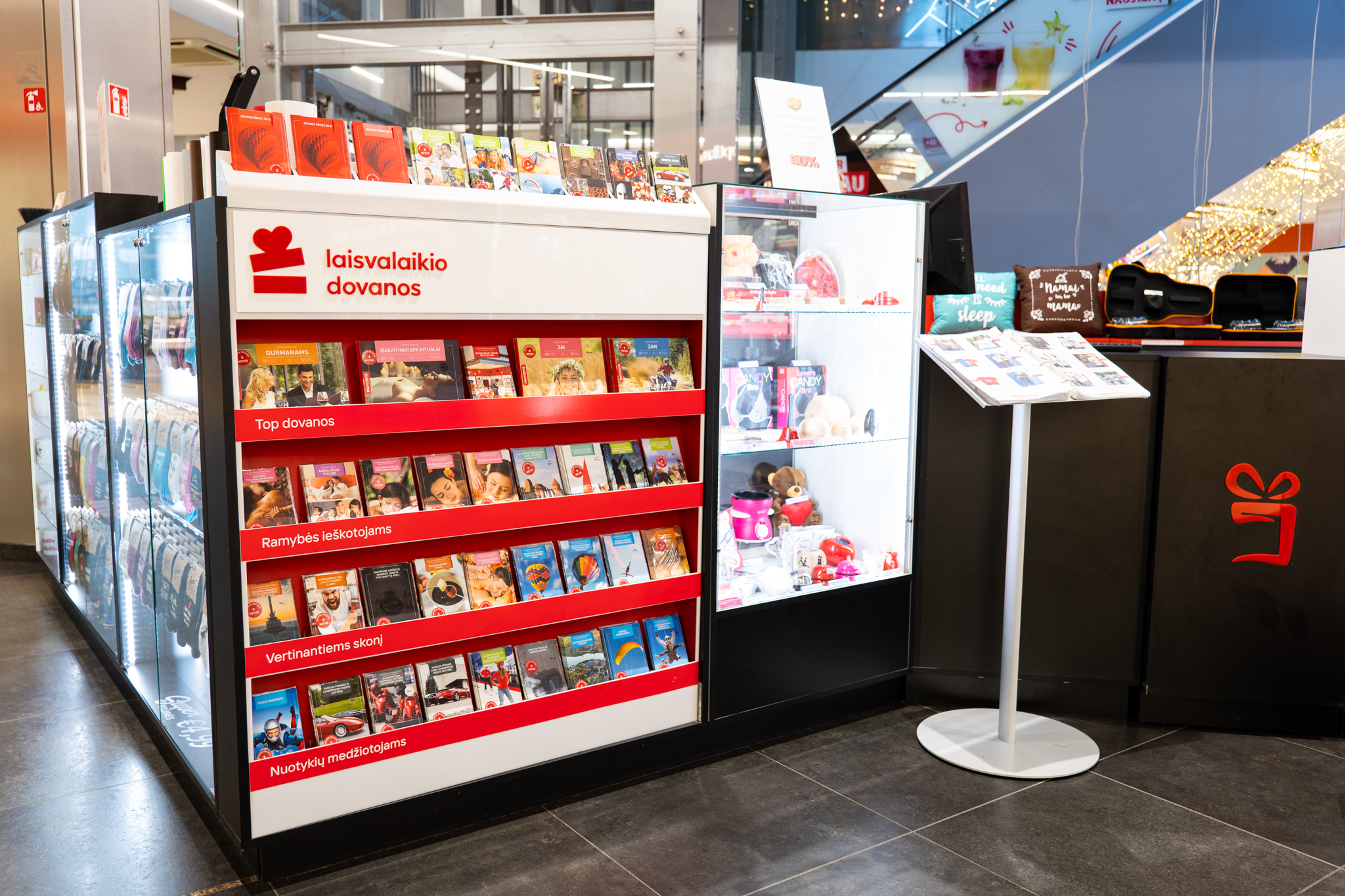 „Laisvalaikio dovanų“ parduotuvėse galite įsigyti išskirtinio dizaino dovanų kortelių, rinkinių ir dovanų pakuočių. Be internetinės ir fizinių parduotuvių, dovanas taip pat galite įsigyti stenduose RIMI parduotuvėse.